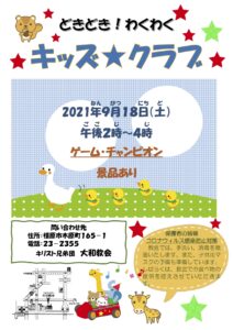 どきどき!わくわく「キッズ★クラブ」のお知らせ
