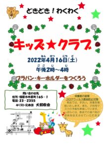 どきどき!わくわく「キッズ★クラブ」2022年4月のお知らせ