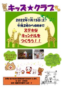 日時:2022年1月15日(土) 午後2時〜4時 場所:キリスト兄弟団大和教会 ★すてきなキャンドルをつくろう!! ★たのしいさんびとせいしょのおはなし