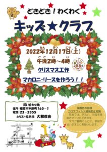 日時:2022年12月17日(土) 午後2時~4時 場所:キリスト兄弟団大和教会