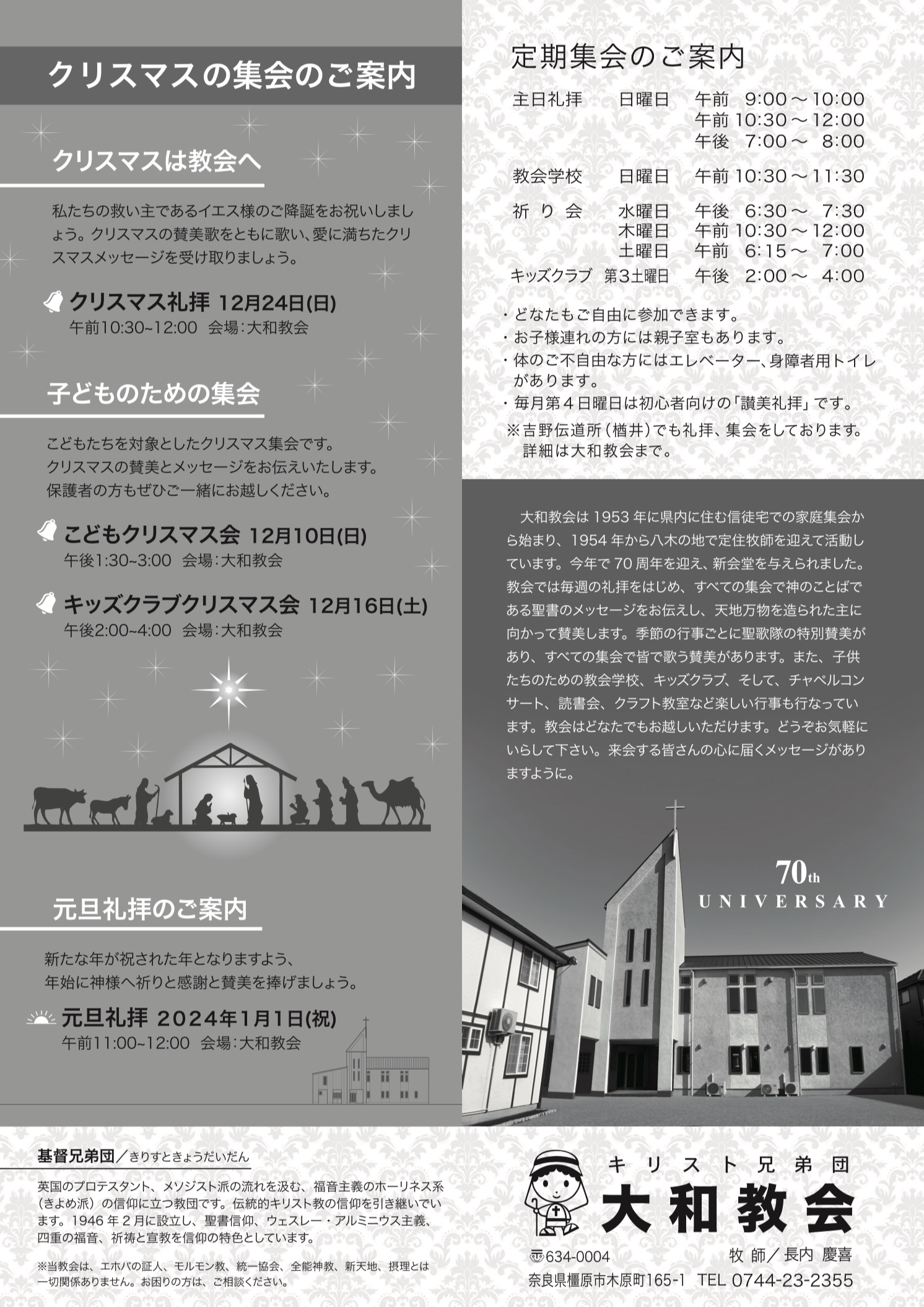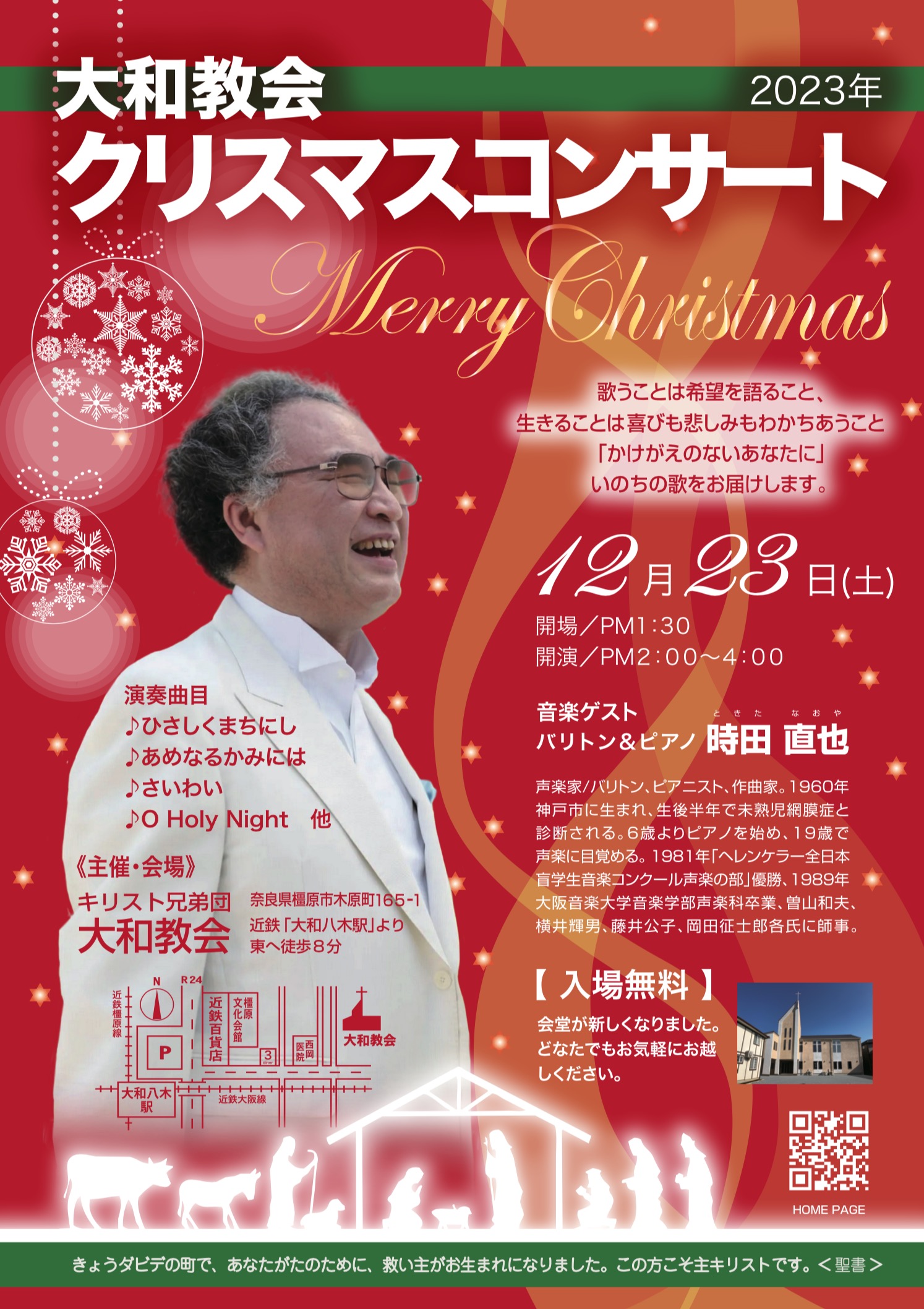 大和教会クリスマスコンサート 2023年12月23日(土) 午後2時〜4時 会場:大和教会礼拝堂